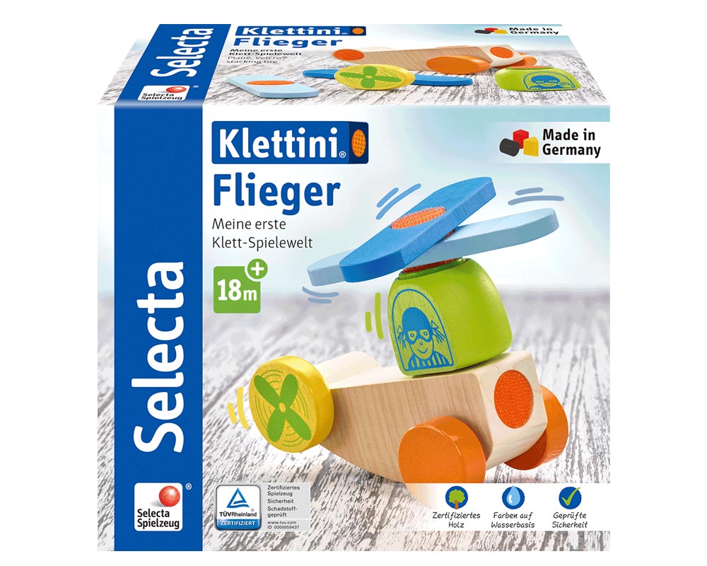 Construis-toi l’avion de tes rêves : L’imagination des enfants est stimulée et leur apporte une source d’amusement. Les tout-petits peuvent parfaitement s’immerger dans le nouveau monde des jeux Selecta® (à bande velcro). Les Klettinis® sont conçus pour les petites mains et sont compatibles avec les autres kits à bande velcro de Selecta® pour la construction créative.