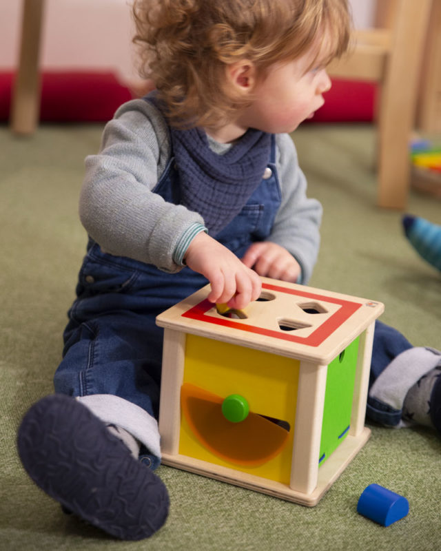 Pousser vers le haut, passer par le bas, tourner, attraper : une fois les blocs de construction insérés dans la bonne « entrée », ils peuvent-être récupérés d’une manière différente par chacun des côtés.
